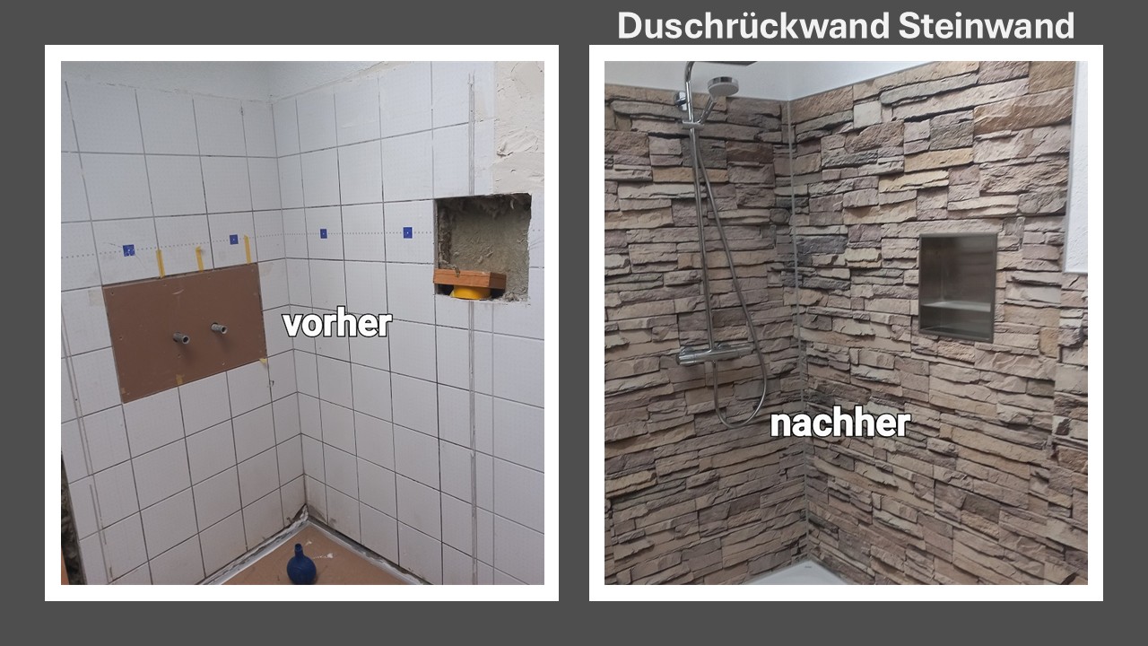 Nicht nur in der Dusche ein echter Blickfang: Unsere Rückwände mit Steindekor machen übrigens auch in der Küche eine hervorragende Figur. Die pflegeleichte, hitzebeständige Oberfläche ist ideal für Herd- und Spülbereiche.